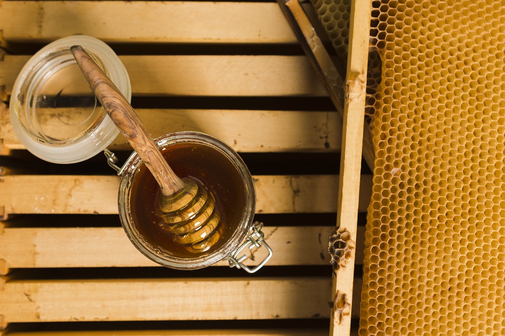 Pierre Naudion, apiculteur de "La Ruche d'Aristée", propose ses miels à la vente, au niveau de l'accueil.