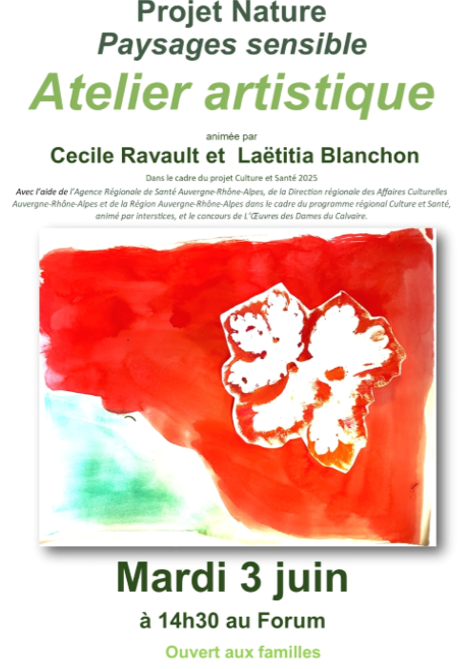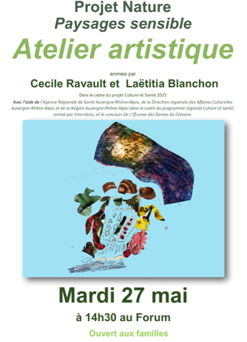 Dans le cadre du programme régional Culture et Santé 2025, animé par Interstices. Avec l’aide de l’Agence Régionale de Santé Auvergne-Rhône-Alpes, de la Direction régionale des Affaires culturelles Auvergne-Rhône-Alpes et de la Région Auvergne-Rhône-Alpes, et le concours de l’Œuvre des Dames du Calvaire.