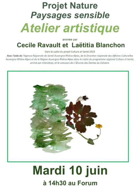 Atelier animé par Cécile Ravault et Laëtitia Blanchon, dans le cadre du projet Culture et Santé 2025 : Projet nature, paysages sensibles.