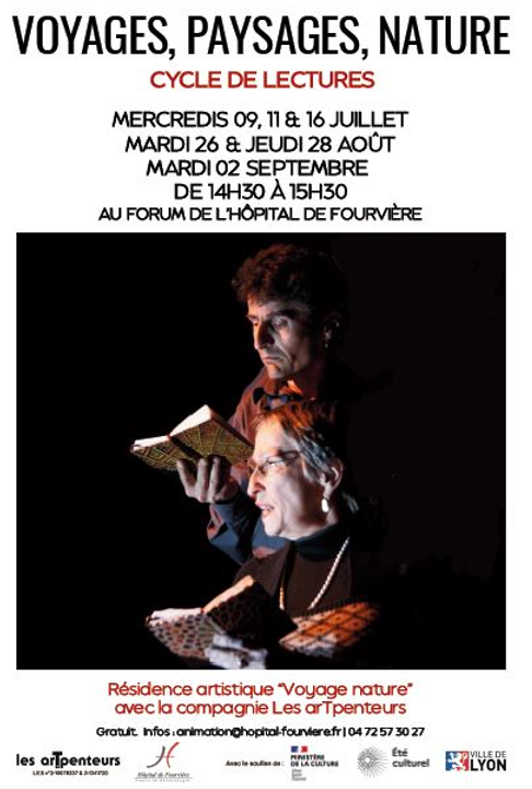 Voyages, paysages, nature : Partenariat avec la Compagnie Les ArTpenteurs / Projet soutenu par la DRAC Rhône-Alpes dans le cadre du dispositif Été culturel. Présentation de spectacle et lecture autour du voyage.
