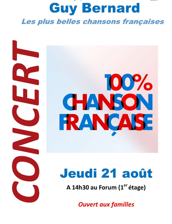 Concert : 100% chanson française, en partenariat avec Guy Bernard, animateur bénévole. Ouvert aux familles.