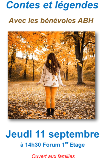 Contes et légendes : en partenariat avec l’Association Bibliothèques d'Hôpitaux de Lyon (ABH). Ouvert aux familles.