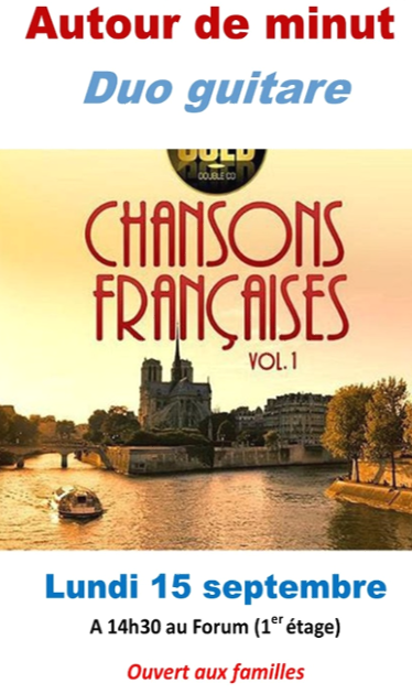 Autour de minuit : Duo de guitare en Partenariat avec l’association Musique à vivre. Concert ouvert aux familles.