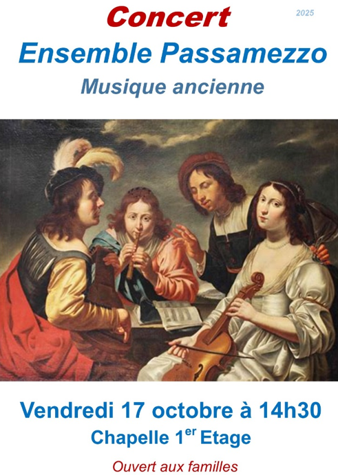 Musique ancienne par l'Ensemble Passamezzo. Concert ouvert aux familles.