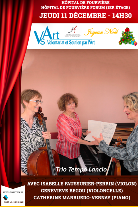 Trio Tempo Lancio avec au violon Isabelle Faussurier Perrin, au violoncelle Geneviève Bégou et au piano Catherine Marruedo-Vernay. En partenariat avec VsArt, avec le soutien d'AG2R La Mondiale.