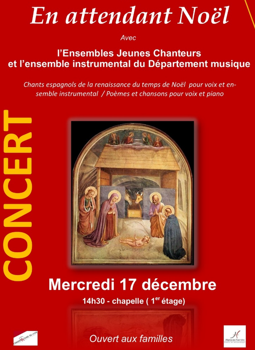 En attendant Noël avec l’Ensemble Jeunes Chanteurs, accompagné de l’ensemble instrumental du Département de musique, en partenariat avec le CRR (Conservatoire à Rayonnement Régional).