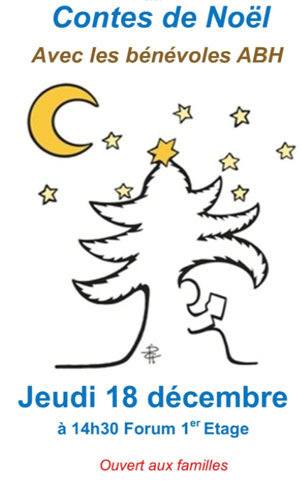 Contes de Noël en partenariat avec l’Association Bibliothèques d'Hôpitaux de Lyon (ABH). Ouvert aux familles.