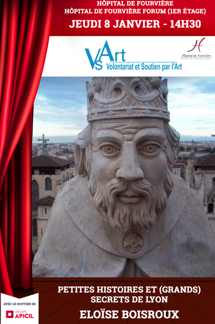 Petites histoires et (grands) secrets de Lyon. Conférence animée par Eloïse Boisroux. En partenariat avec VsArt avec le soutien de l'Apicil. Ouvert aux familles.