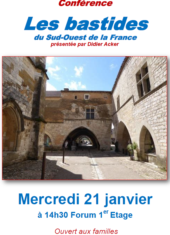 Les bastides du Sud-Ouest de la France : conférence présentée par Didier Acker, animateur bénévole.
